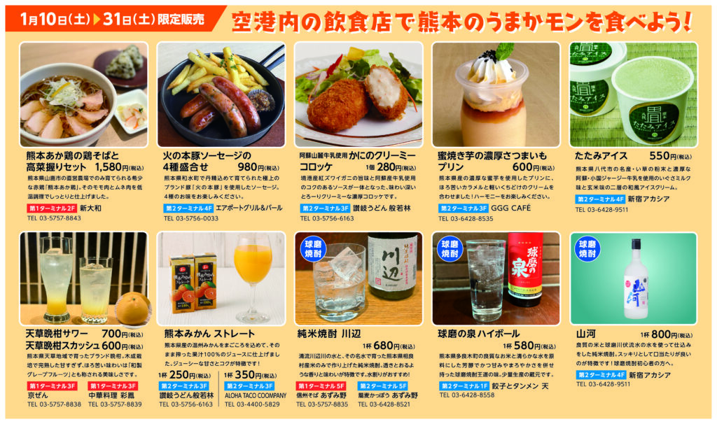 TOP > お知らせ一覧 > 【くまもとモン×羽田空港飲食店】羽田空港内の飲食店で熊本のうまかモンを食べよう!